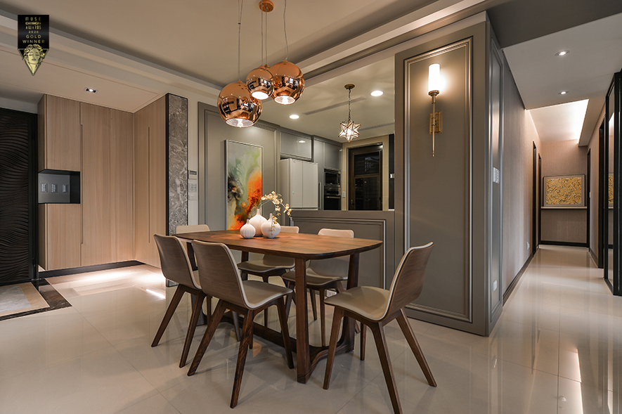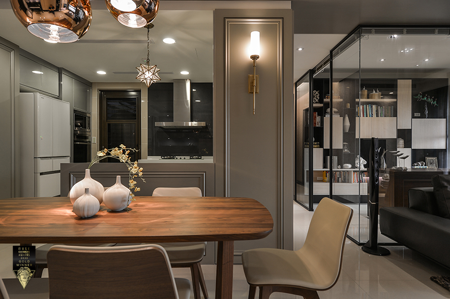 擅長打造專屬業主身心靈對話境地的 澄境設計 鄭抿丹 設計總監,於作品《珀・影》中,透過稜角巧妙轉化之下,再運用大量鍍鈦、清玻,使得空間通透不窄隘,而另一作《異境同遊》,則展現風格丕變的場域變化,兩件住宅之作皆呈現完美居家場景,奪下雙金獎項的榮耀,品牌聲譽躍升國際舞台!
