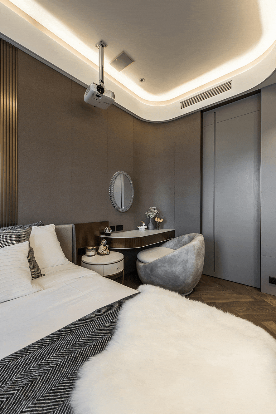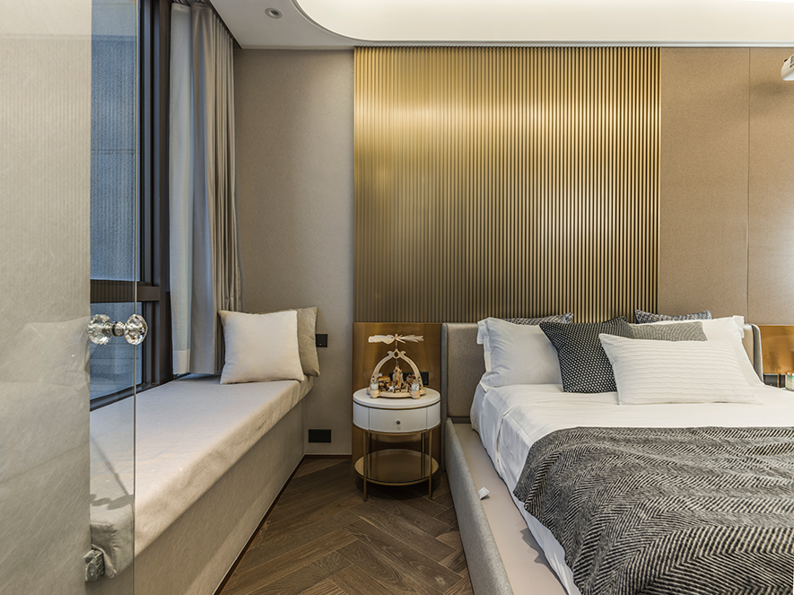 除特定隔間要求外,屋主沒有給設計團隊太多限制,因此在劃設場域後,整體的視覺與裝配有許多自由發揮空間。儘管佔面有其限制,透過 澄境設計 鄭抿丹 設計總監 通透的處理手法,仍形塑出了溫馨且視覺效果不窄隘的空間;經由稜角的轉化,大量鍍鈦、清玻的運用,一個溫暖時髦的家居場景就此誕生。