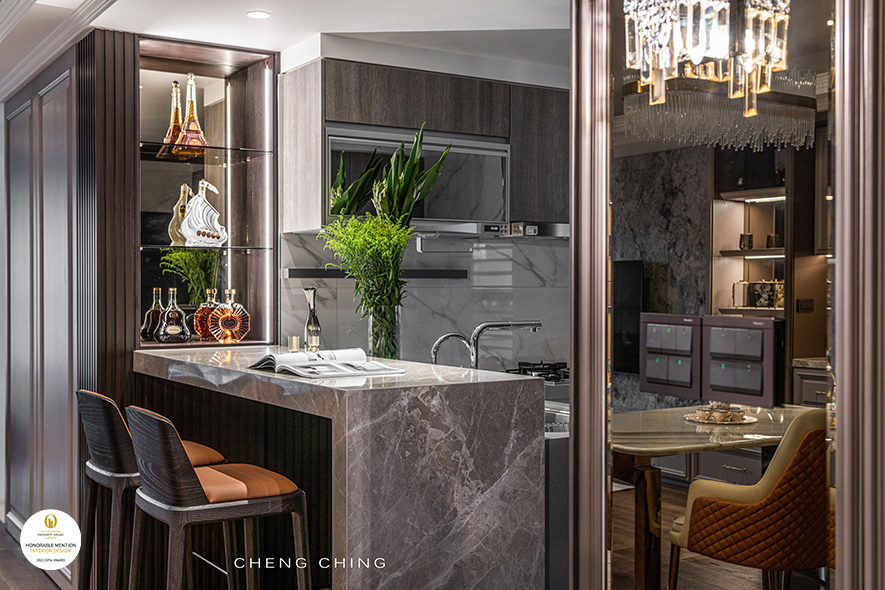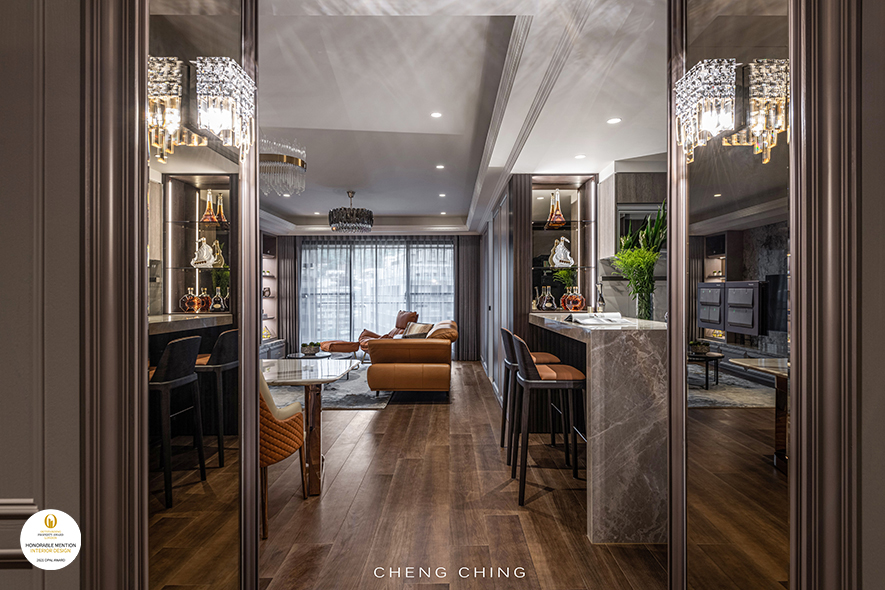 澄境設計 鄭抿丹 於作品《雅藍醇調》中,搭配鮮豔色彩及藝文佈置,呈現多元混搭風情,以典雅歐式的咖啡廳,另一作《璀璨絮語》,以大理石、水晶燈飾,襯托空間的精緻高雅,而暖橘的活潑調性,對應低調的紫藕配色,藉此打造紋理、彩度豐富的宅邸,一舉奪下2021 OPAL Award Winner大獎與Honorable Mention榮譽,讓品牌耀眼國際!