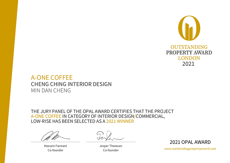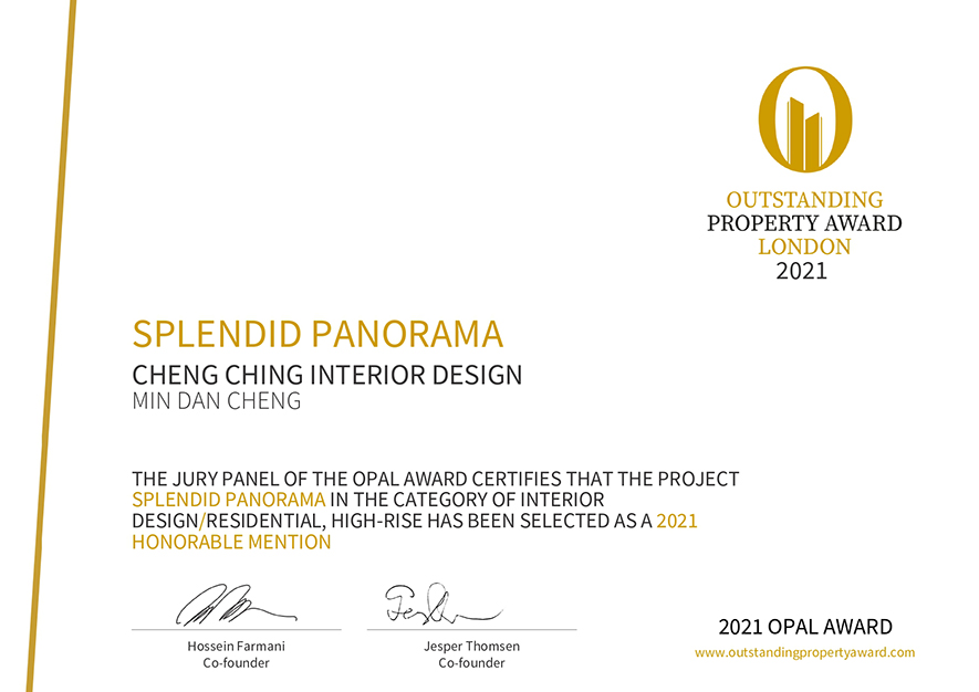 OUTSTANDING PROPERTY AWARD LONDON,OPAL(英國倫敦傑出地產大獎)由全球知名企業集團Farmani Group組織,並以招攬全球最佳建築師、室內設計師與房地產開發商為目標,在創造異業菁英聯合平台的同時,找尋各地最富創造力、革新感、社會影響力與永續性的設計方案。參與者有機會替自己最新穎的企劃,博得國際能見度,並且和產業的先驅及專業人士進行交流。