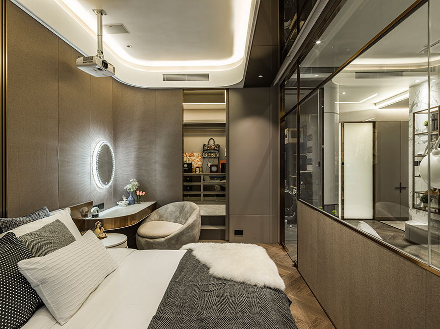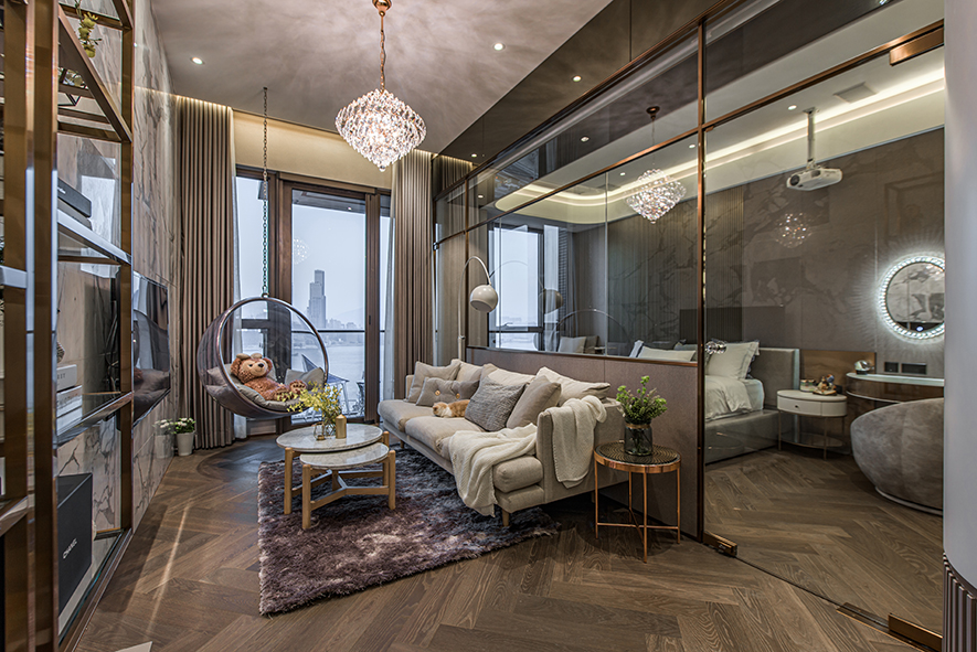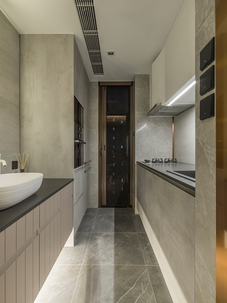 除特定隔間要求外,屋主沒有給設計團隊太多限制,因此在劃設場域後,整體的視覺與裝配有許多自由發揮空間。儘管佔面有其限制,透過 澄境設計 鄭抿丹 設計總監 通透的處理手法,仍形塑出了溫馨且視覺效果不窄隘的空間;經由稜角的轉化,大量鍍鈦、清玻的運用,一個溫暖時髦的家居場景就此誕生。