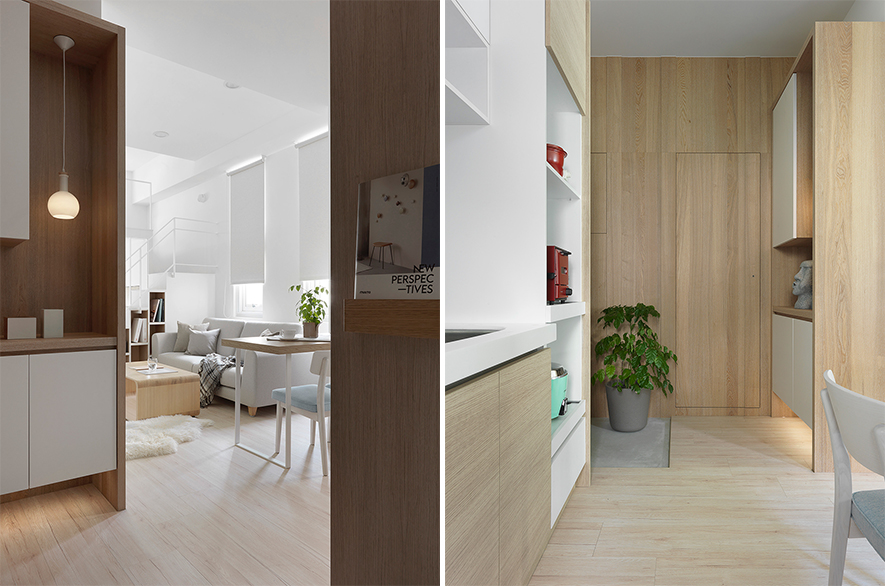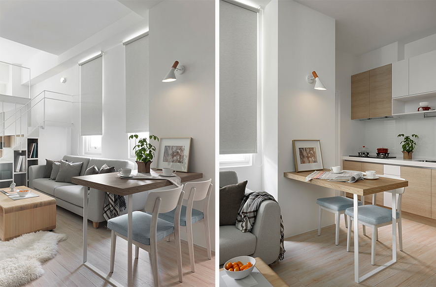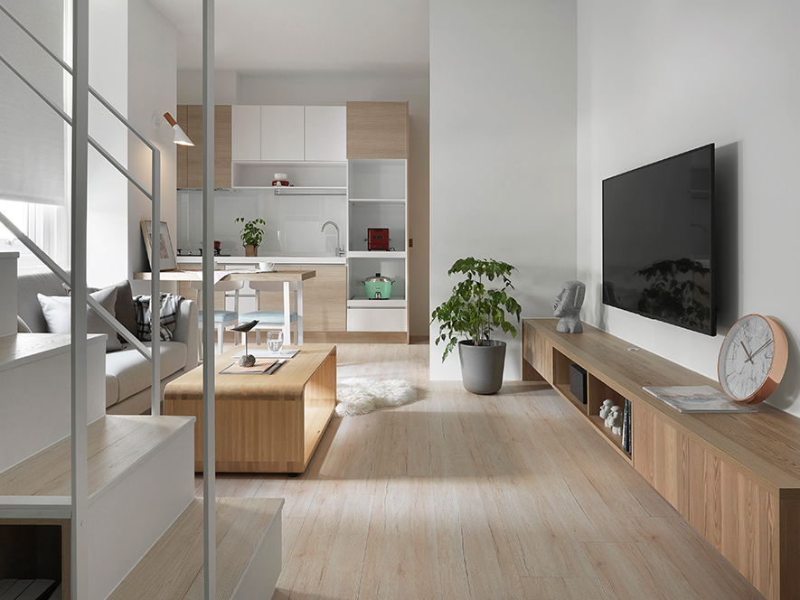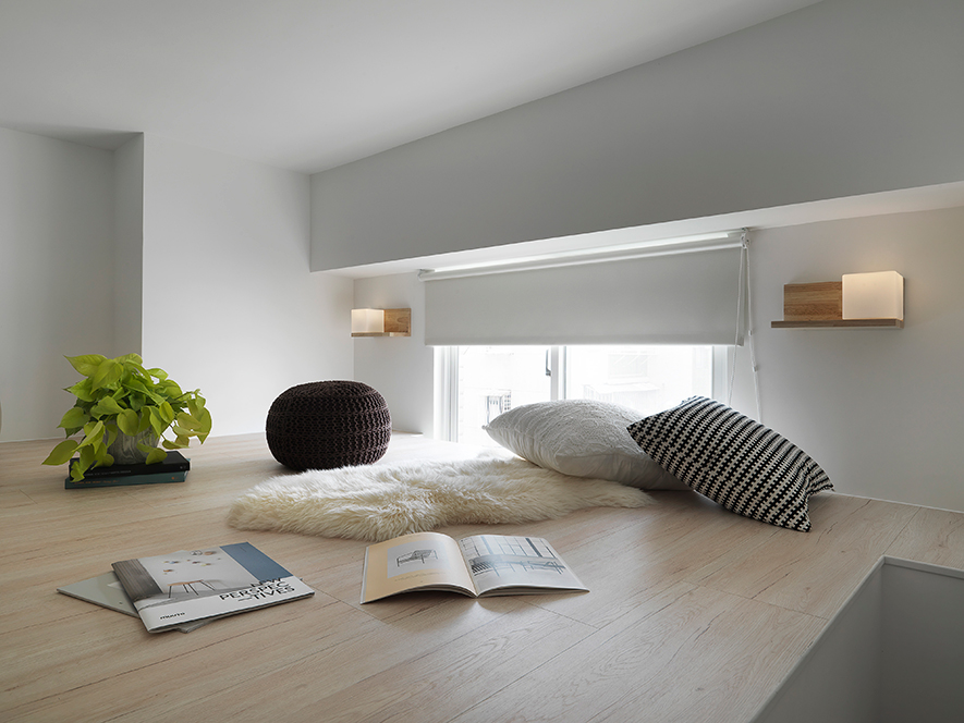 留白、減少收納區位,創造合宜的居住空間,在整合業主對於將來空間的夢想藍圖後,澄境設計 鄭抿丹 設計總監 除去量體內使空間狹隘且採光不佳的一面隔牆,並劃設使視覺效果挑高寬敞的夾層,於一室純白中創造專屬個人的樂園。
