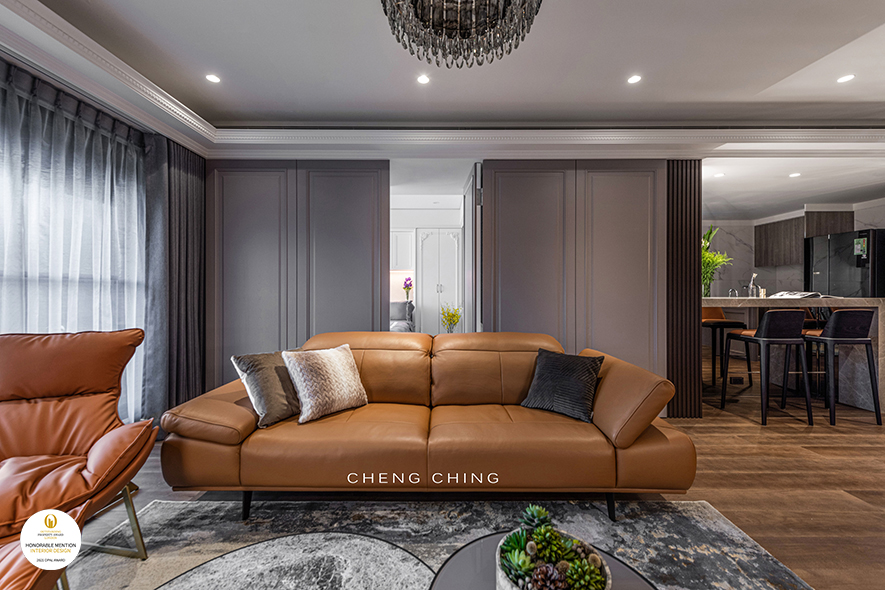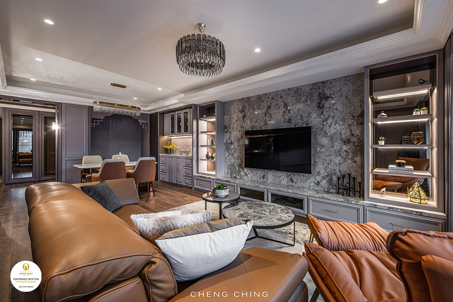 澄境設計 鄭抿丹 於作品《雅藍醇調》中,搭配鮮豔色彩及藝文佈置,呈現多元混搭風情,以典雅歐式的咖啡廳,另一作《璀璨絮語》,以大理石、水晶燈飾,襯托空間的精緻高雅,而暖橘的活潑調性,對應低調的紫藕配色,藉此打造紋理、彩度豐富的宅邸,一舉奪下2021 OPAL Award Winner大獎與Honorable Mention榮譽,讓品牌耀眼國際!